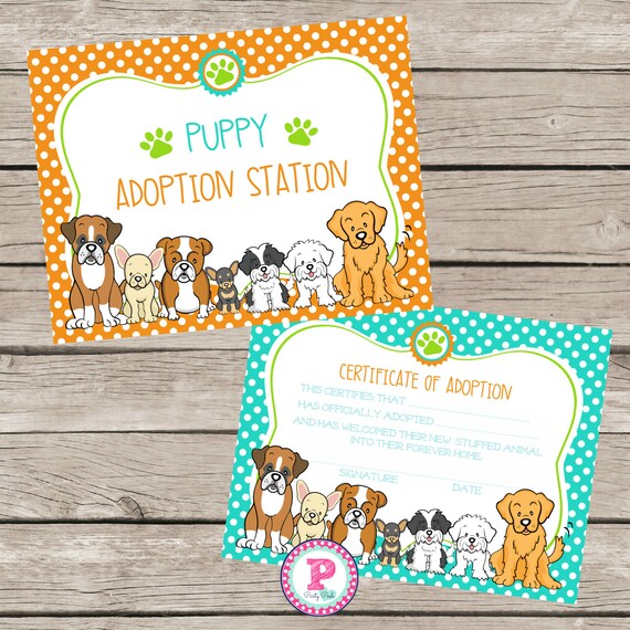 Puppy Adoption Certificate Birthday Party Ideas Polka Dot Etsy Australia